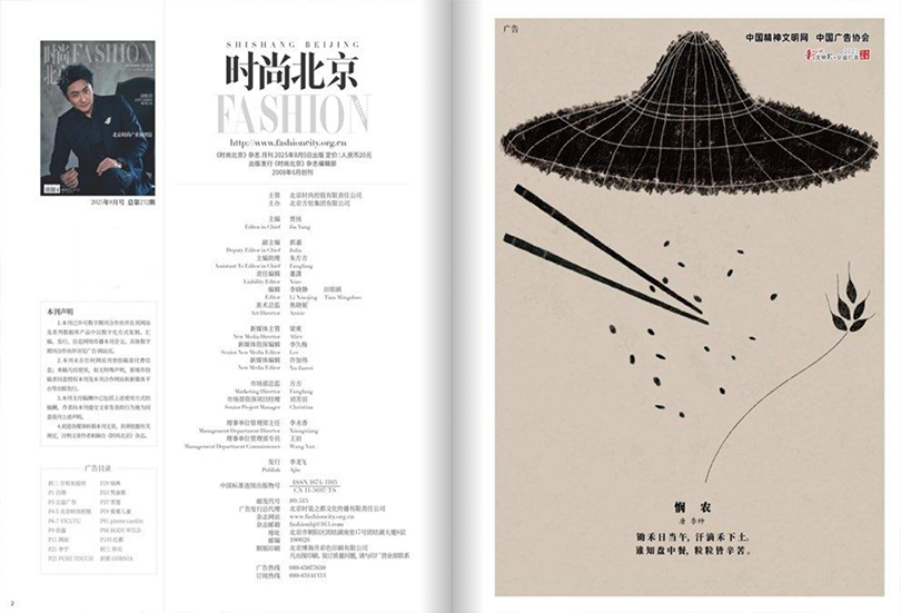 《时尚北京》杂志不仅以宣传中华文化为己任,更是将纸媒与网媒融为一体,引领时尚媒体界的新潮流。其电子版在国内五十家知名网站上争相刊播,人气排名始终名列前茅,足见其受欢迎程度。杂志的内容涵盖了时尚产业的多个领域,以时装产业为核心,同时辐射汽车、数码、美妆、珠宝、腕表、旅游、美食以及北京传统文化等多个方面,为读者提供了全方位、多角度的时尚资讯。